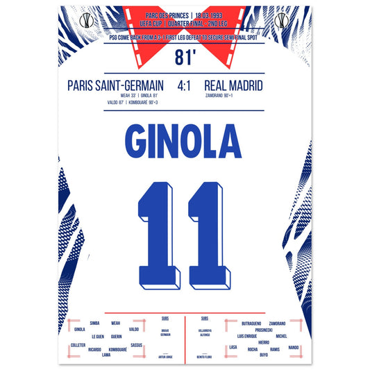 Ginola's goal seals PSG's 4-1 win in the return match against Real Madrid